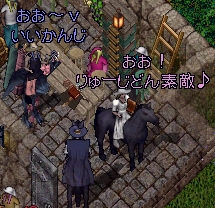 ![]() りゅーじどんと狩りに行く前に、 カヨコさんの店に着替えを買いに来たら、 店主さまに見つかっちゃいましたヽ(´ー`)ノ ここ最近、 着替えはいつもここで買っているのだ( ̄▽ ̄) 服とか帽子とか、 ジャンル別にカラフルに染めて並べてあるので、 その場でコーディネートが楽しめるなり。 でもときどき、 買いたい物が見つからない時がありまする。 店主さまに聞くと・・・ 過酷な労働条件のためか、 ときどきベンダーが 死ぬそうです(=|(がたがた) いや、給料をあげていないという噂も・・・ ![]() なんと! 店主さま直々にオーダーメイドしてくれるとな!(>▽<) あたいの上品なイメージを際だたせる、 白いドレスと帽子を作ってもらいませう。 せっかくの機会なので、 りゅーじどんも何か作ってもらったらどう?(=▽=)ノ ![]() ![]() カヨコさんのコーディネート♪ うむ。煽動テイマーらしいスタイル。 さすがにセンス良いですな!(>▽<)ノ ![]() すっかり気に入ったようで御座る。 「イイかも」ちゅ〜か、「イイ」んじゃ!(=◇=)ノ じゃー、あたいから お礼にカヨコさんの家を燃やしてあげませう(?) ![]() ↑消そうとしない人 |